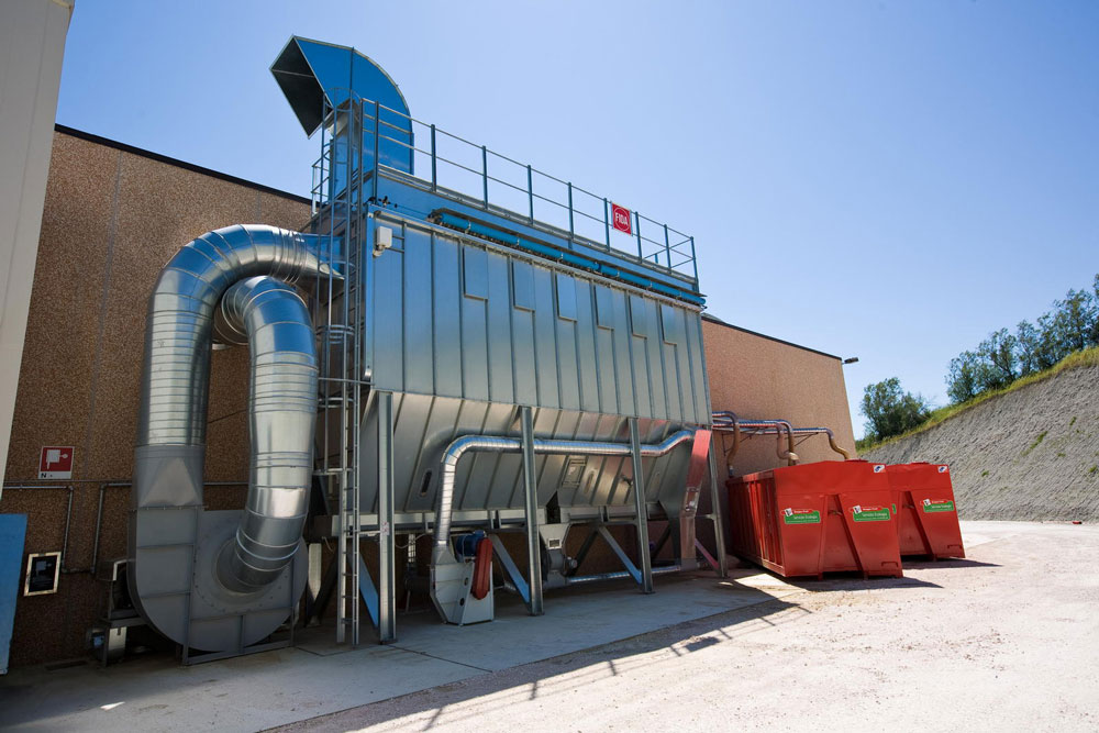 - Filter with dusts discharge into n. 2 roll-off containers with automatic by pass